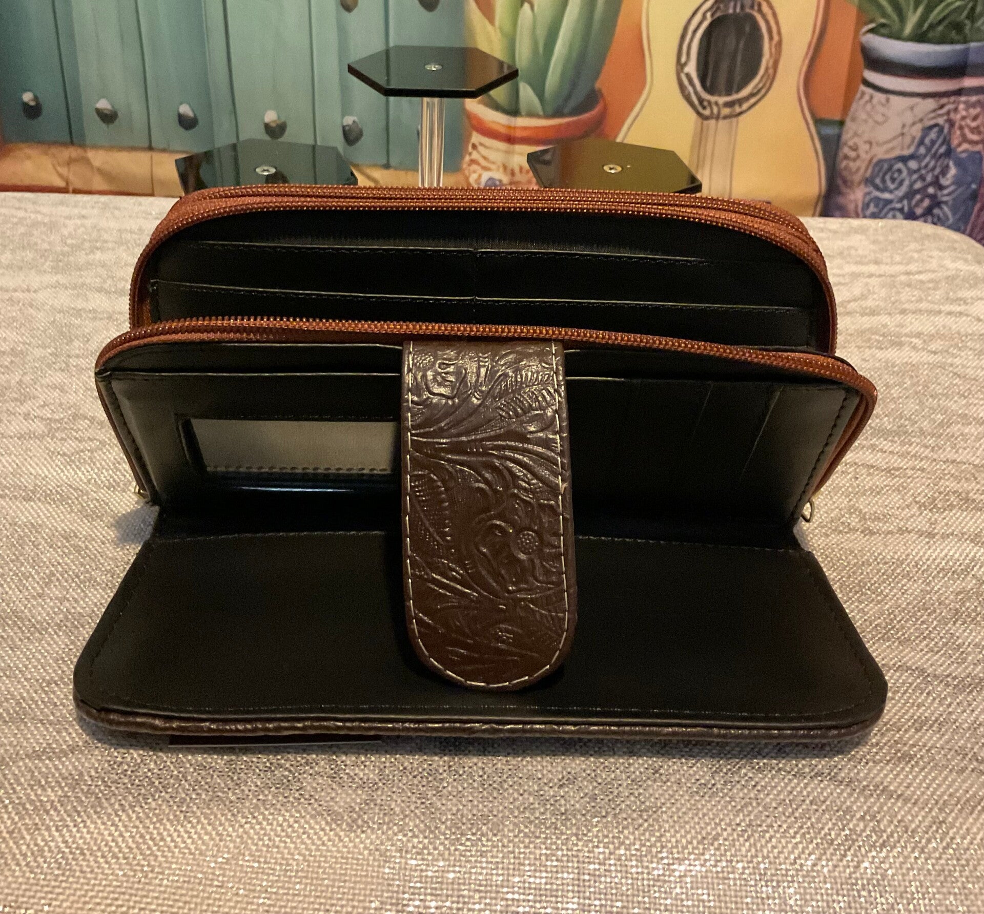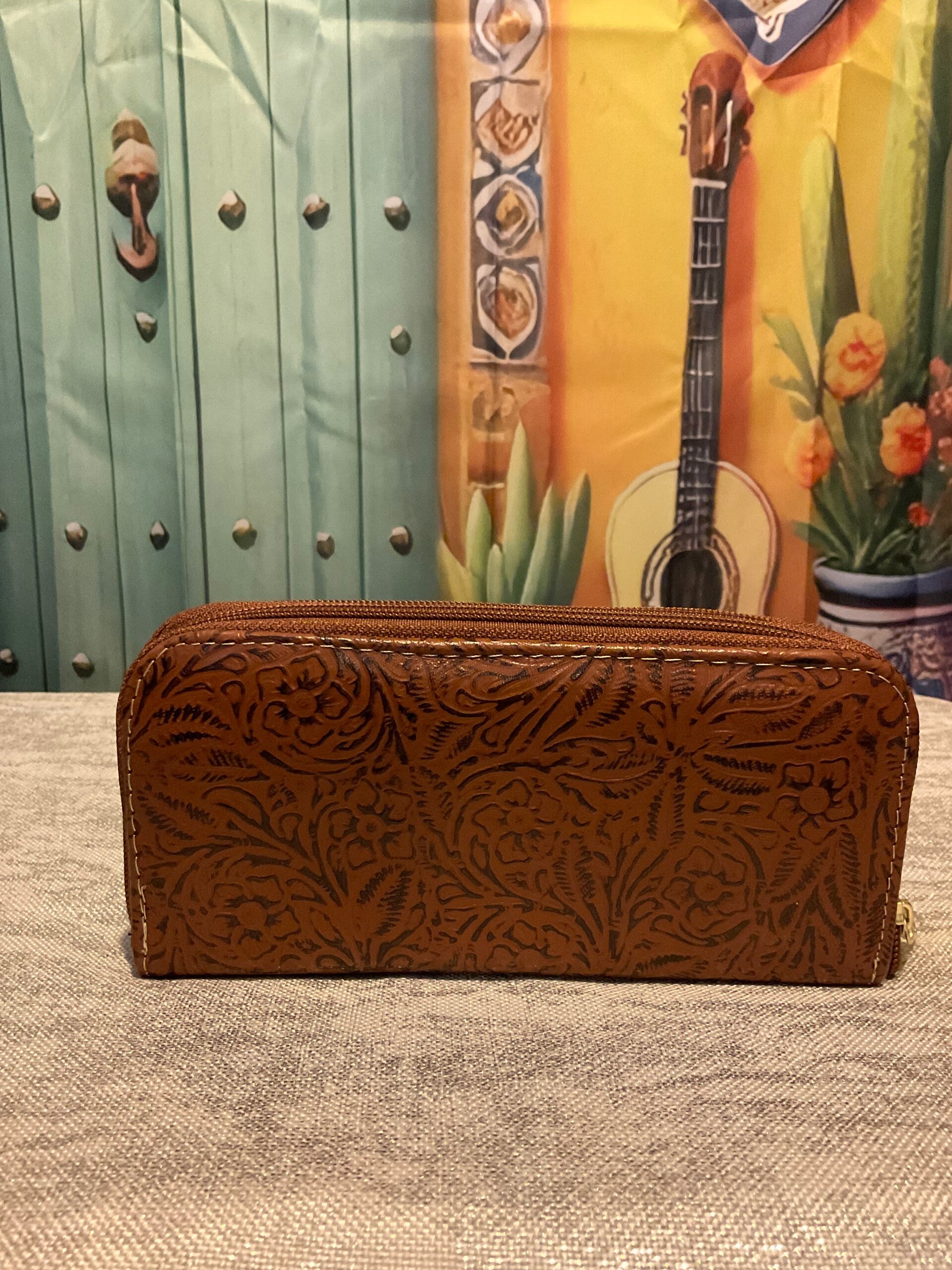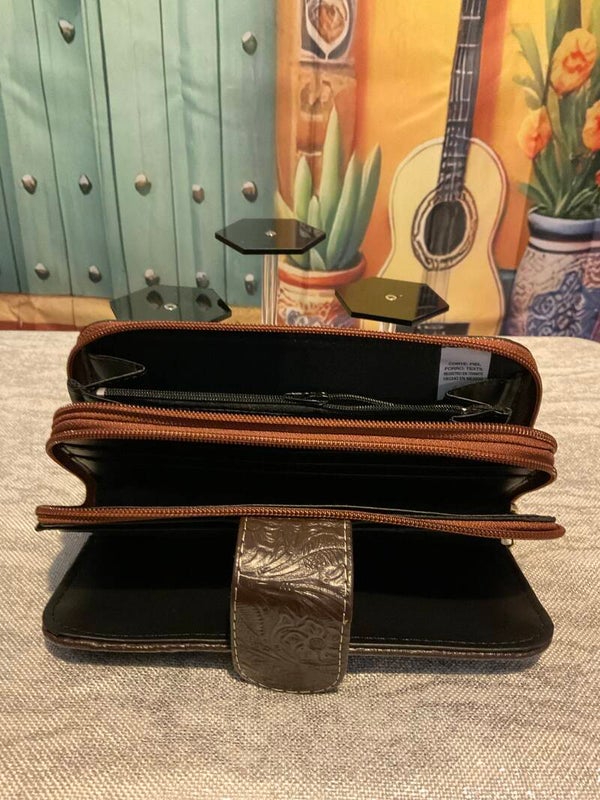 Leather pattern 3 zipper wallet