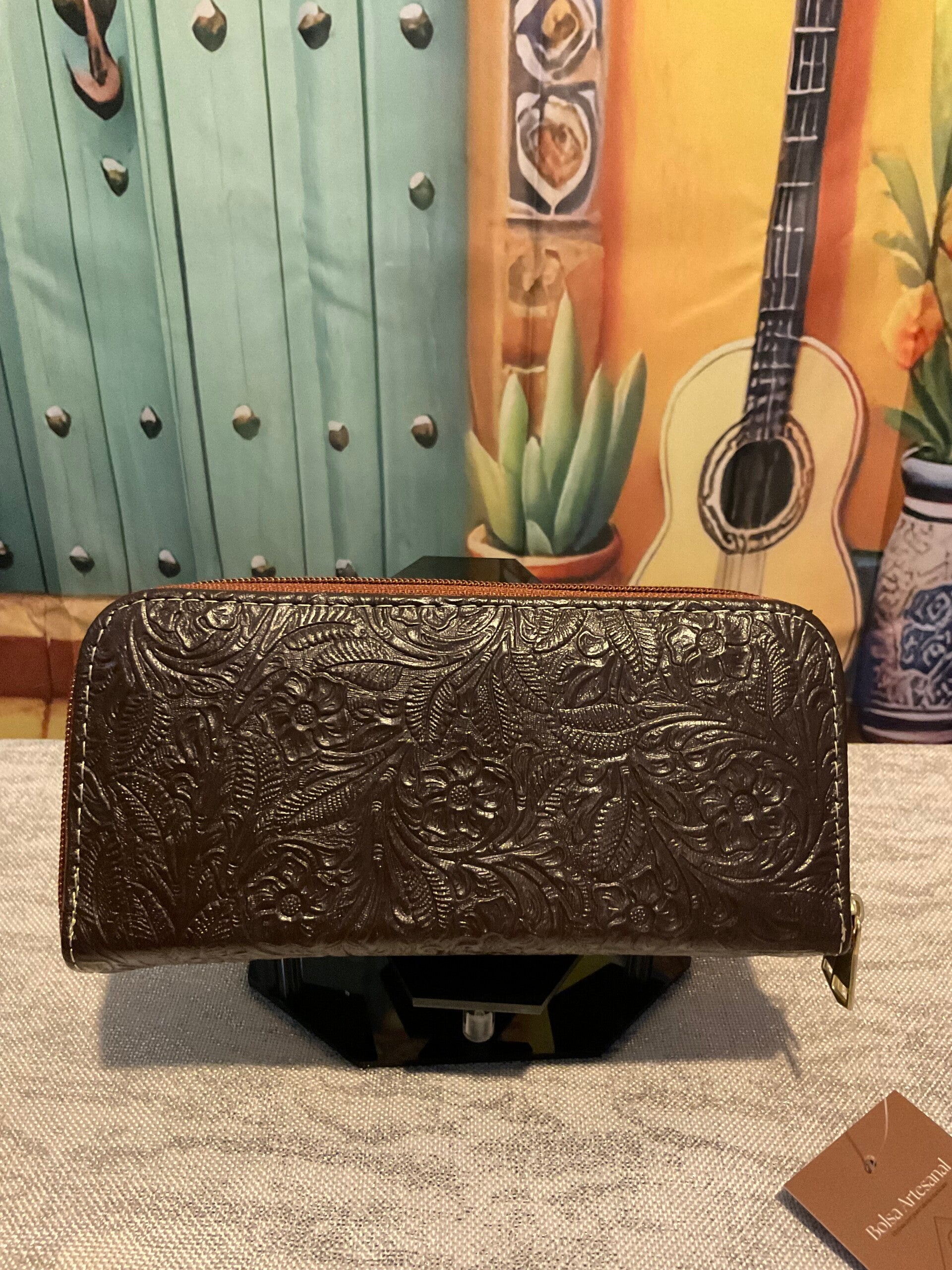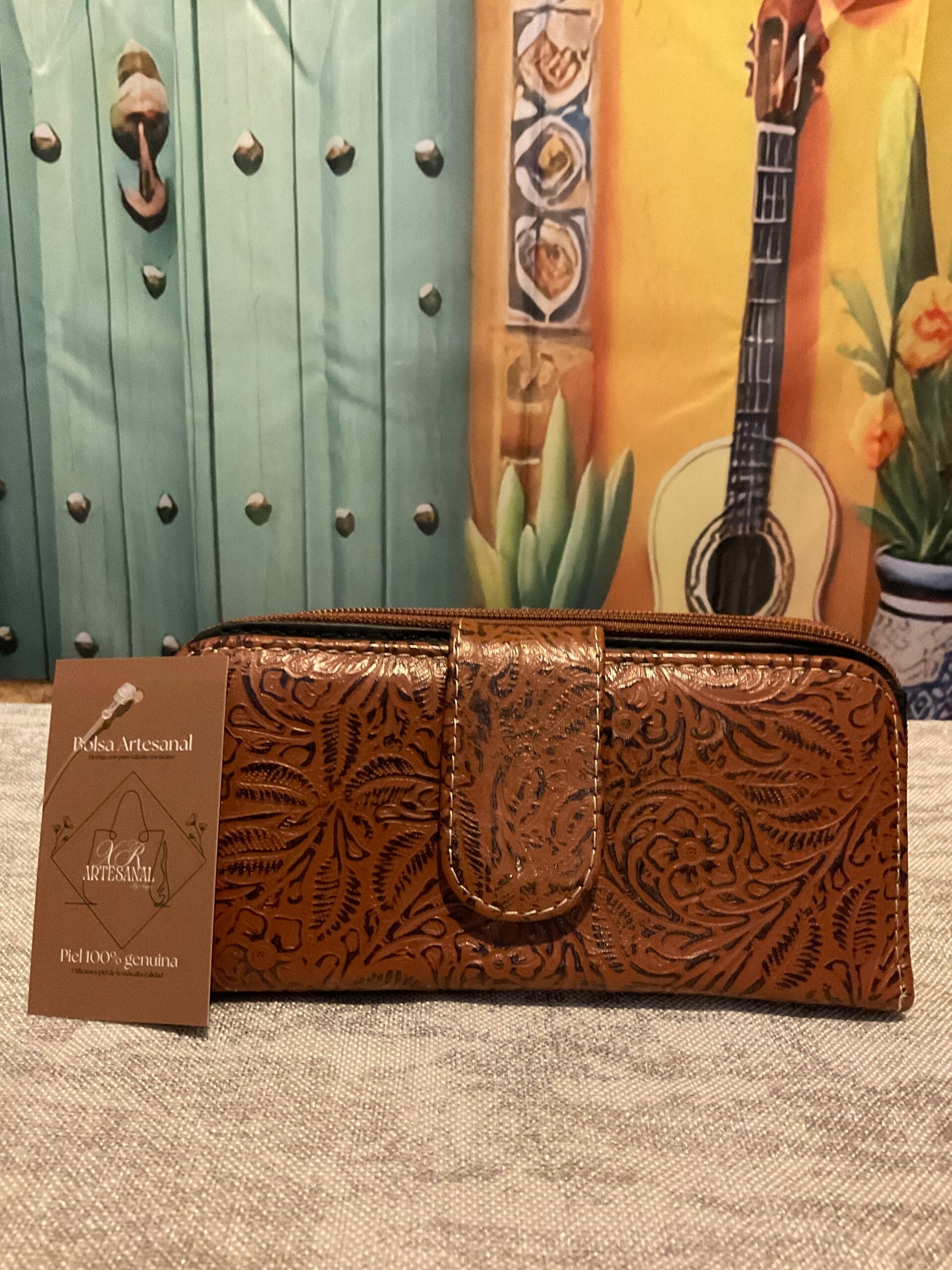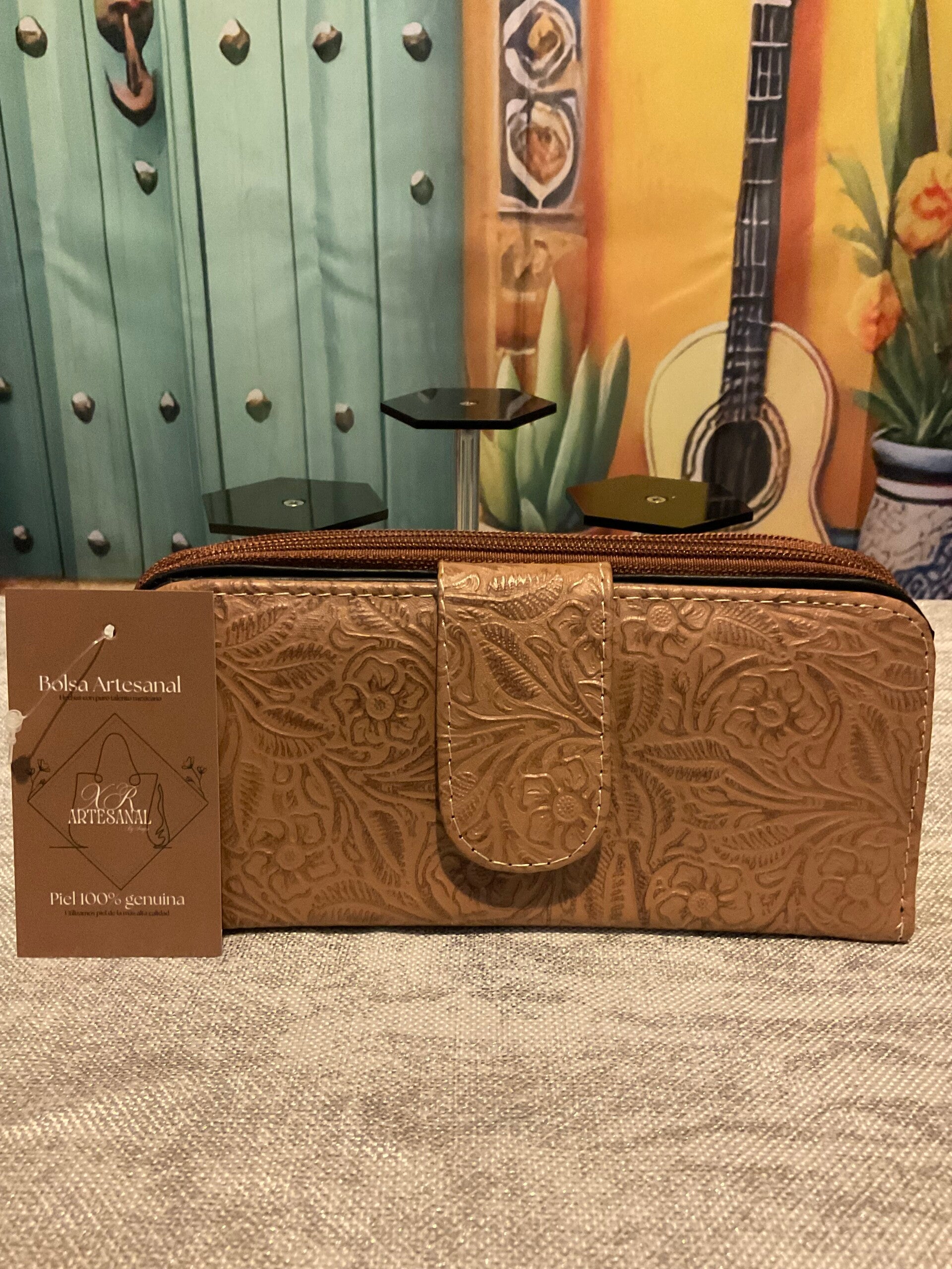 Leather pattern 3 zipper wallet